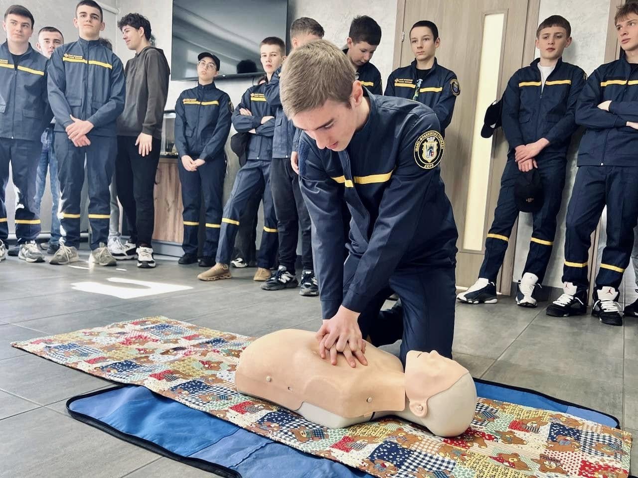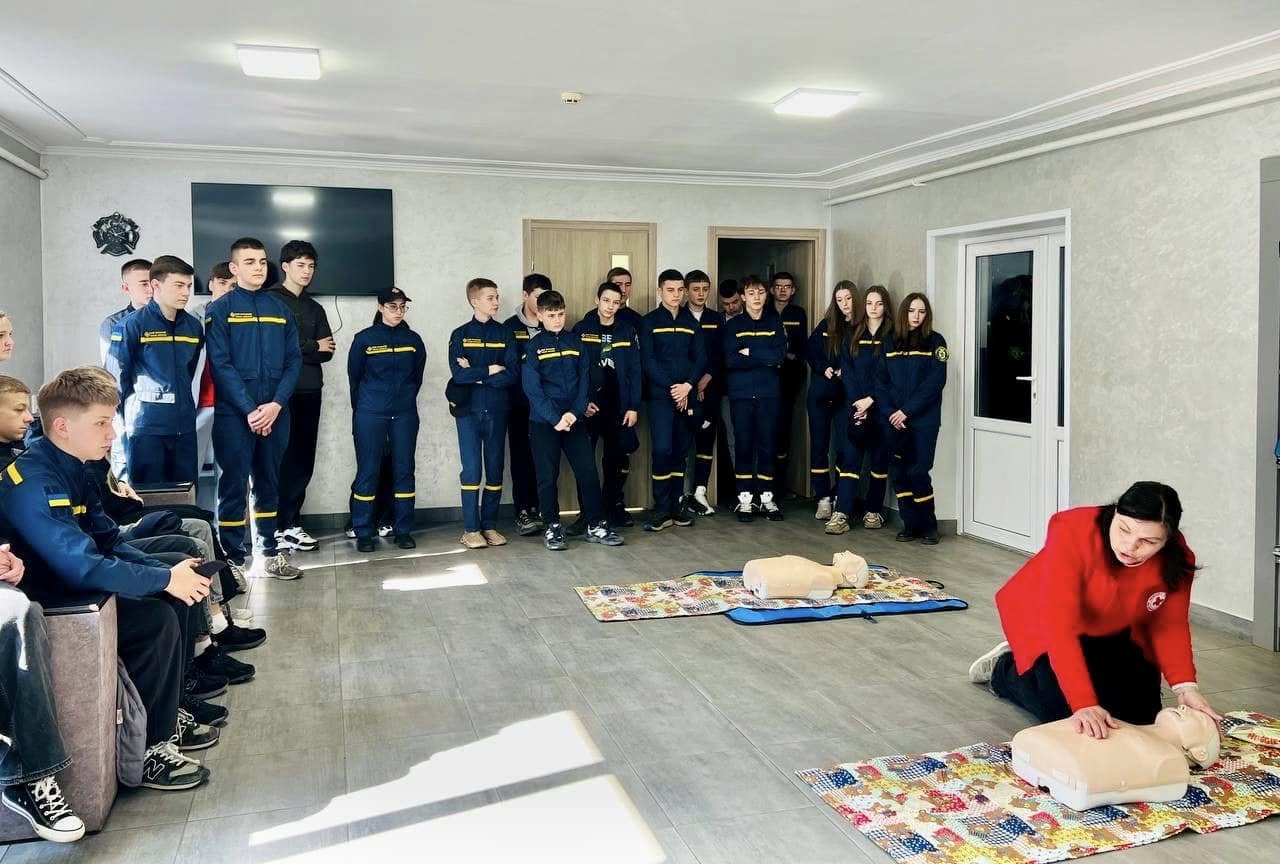 Представник Товариства Червоного Хреста України навчав дітей основам домедичної допомоги: серцево-легеневій реанімації, правильному накладанню турнікетів та алгоритму дій у критичних ситуаціях.