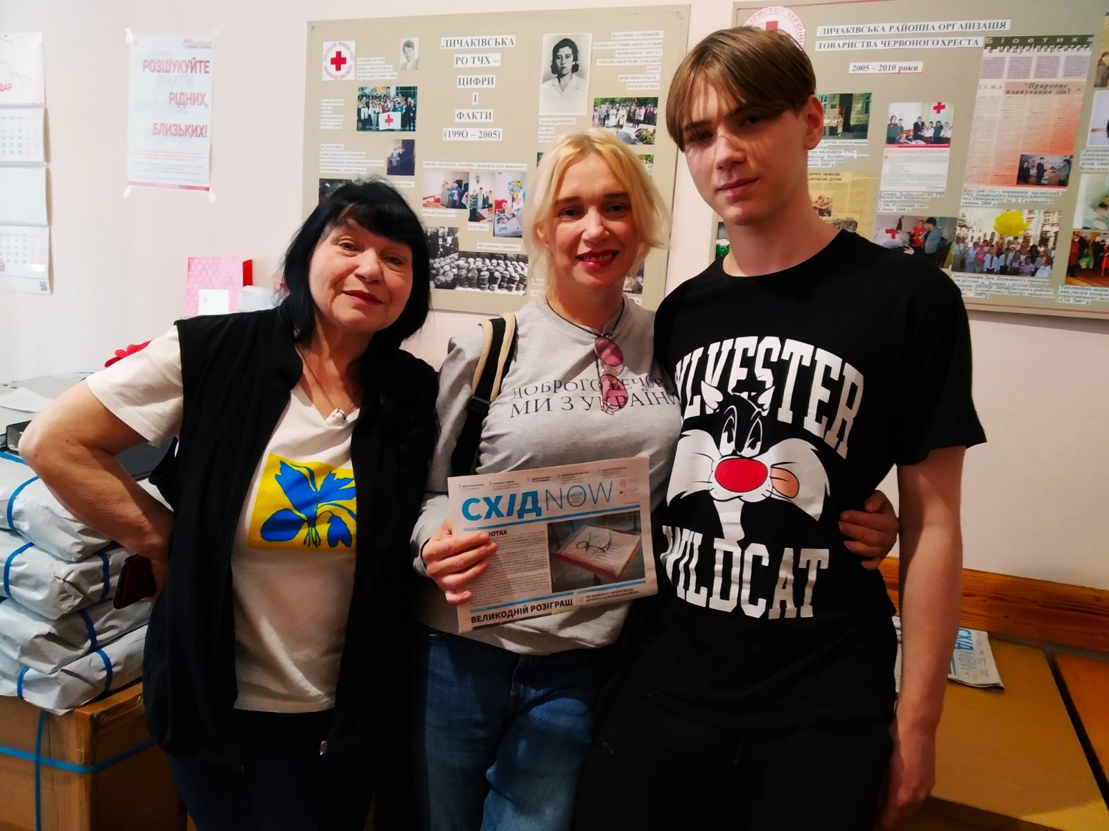 На знімку: Зоя Полусуєва-Зубченко з дочкою і внуком в офісі Личаківського представництва Львівської ОО ТЧХУ 2 травня 2024 р. Про історію зустрічі з цією родиною див. за посиланням - https://lviv-redcross.at.ua/blog/2024-05-02-27541