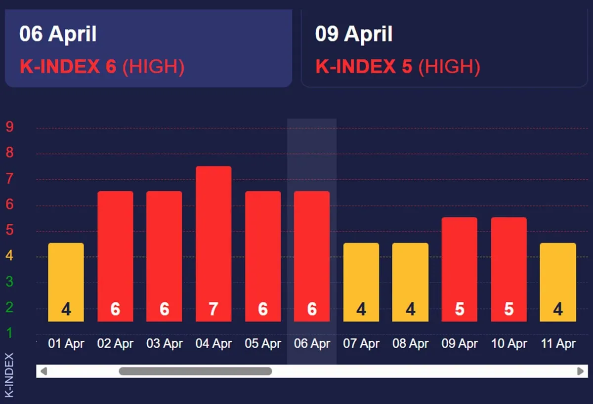 Таким чином, 6 квітня 2025 року штормитиме 6-бальна магнітна буря, адже сонячна активність буде на високому рівні.