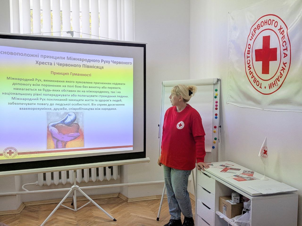 На базі волонтерсько-молодіжного простору «Волонтер Land» для молоді з інвалідністю Горбова Ольга провела інформаційний захід «Історія створення Товариства Червоного Хреста України», на якому ознайомила підопічних з основоположними принципами та цінностями, символікою, напрямками діяльності та програмами.