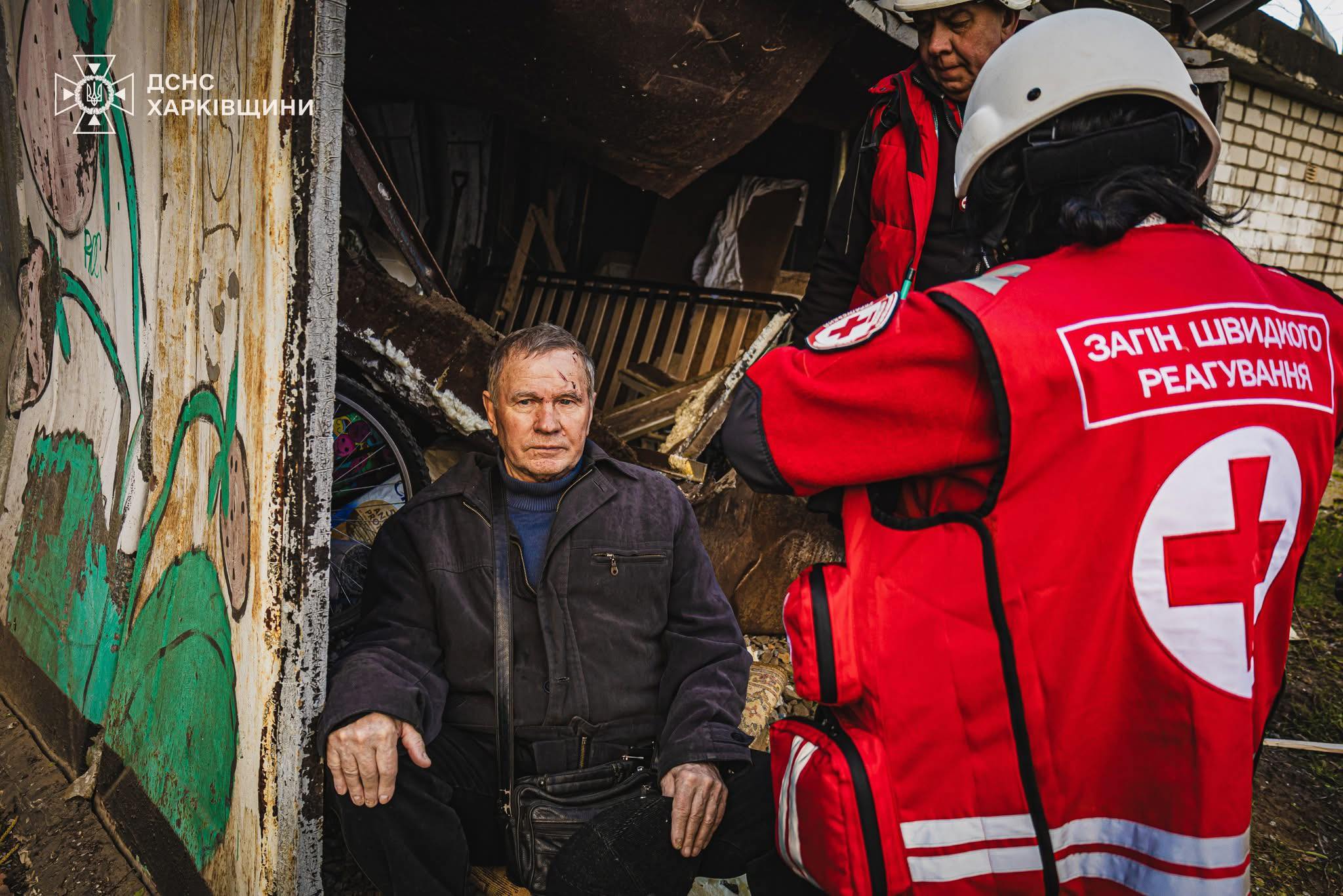 Волонтери Загону швидкого реагування УЧХ у Харківській області спільно з іншими рятувальними службами працюють на локаціях, пошкоджених через ранкову ворожу атаку на місто. Вони обстежують пошкоджені будинки та прилеглі території для виявлення постраждалих, надають їм першу допомогу, першу психологічну допомогу та транспортують до медичних закладів. Волонтери також здійснюють видачу води та гарячих напоїв місцевим мешканцям і рятувальникам. До реагування залучена кінологічна група.