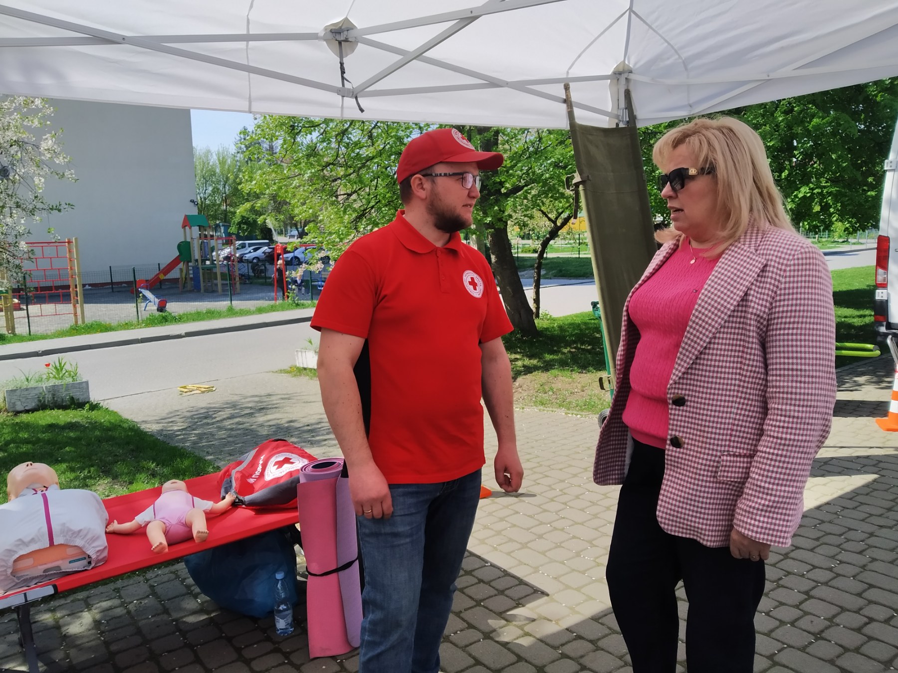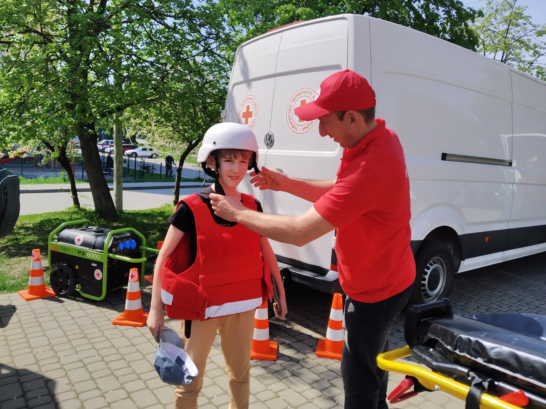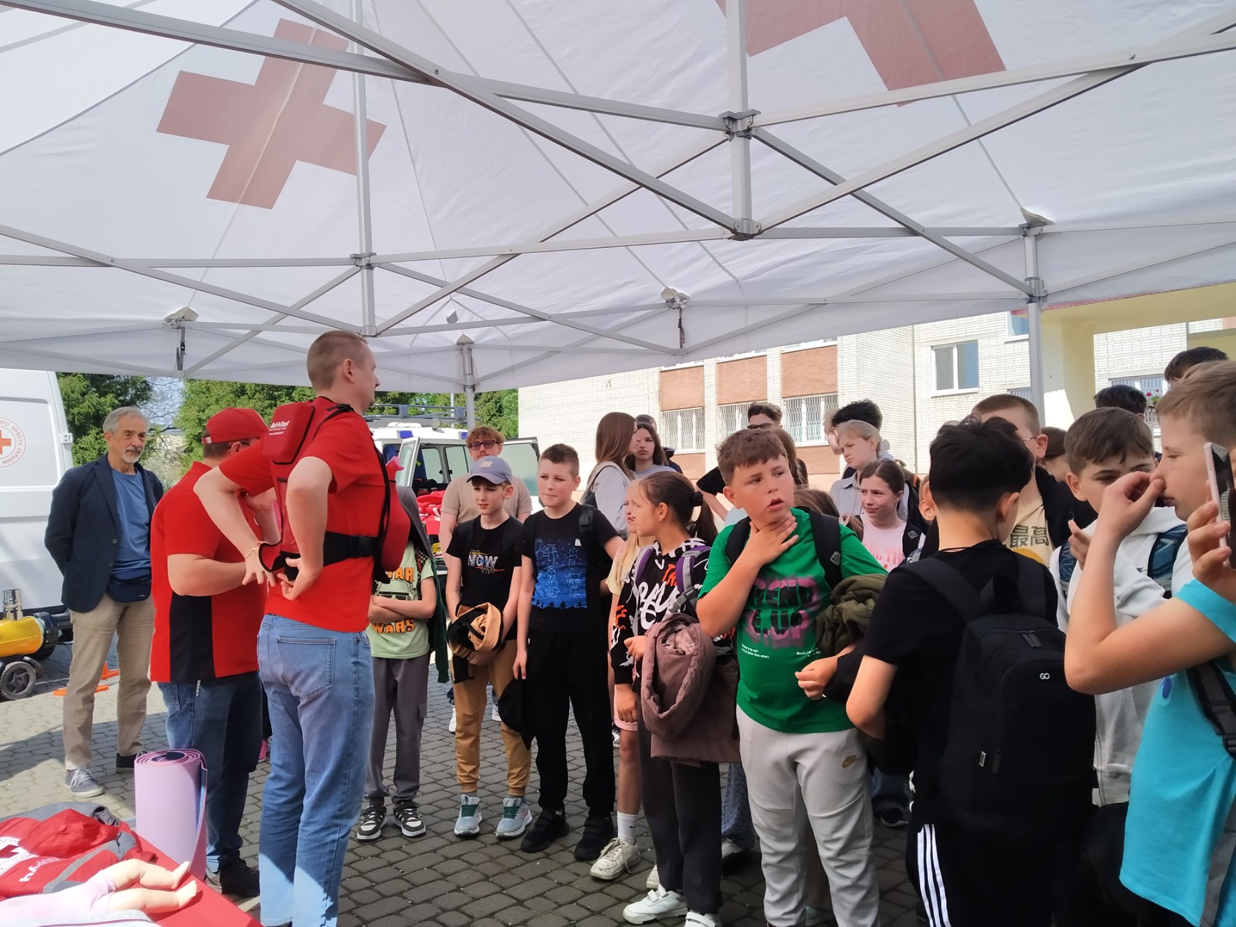 Волонтери ЗШР Львівської ОО ТЧХУ познайомили дітей зі своєю роботою. Показали реанімобіль, бронежилети, шоломи, інший реманент для порятунку постраждалих.