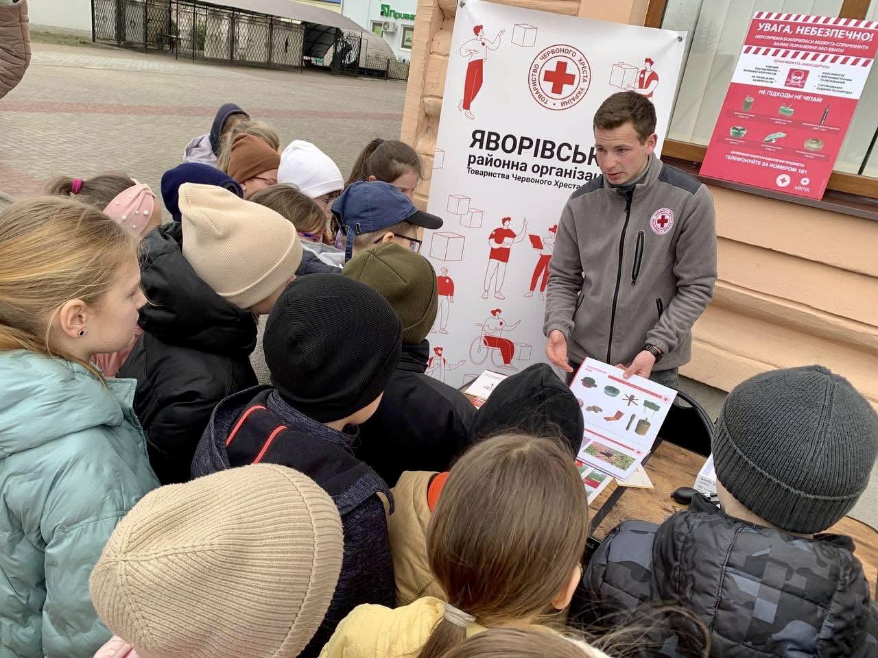 У Львівській області фахівці з напрямку «Інформування про ризики вибухонебезпечних предметів та правила безпечнішої поведінки» Українського Червоного Хреста активно інформують учнів шкіл у дні Цивільного захисту про ризики вибухонебезпечних предметів.