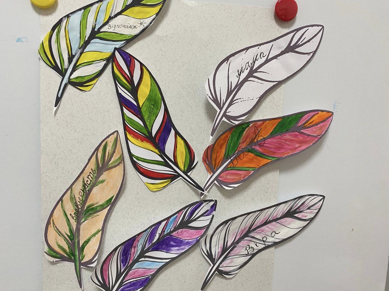 Під час вправи «Крила підтримки» кожен учасник написав на символічному «пері» слово , яке дає йому силу жити, триматися, надихає. Ці крила стали не лише частиною образу ангела, а й нагадуванням про власні ресурси та опори.