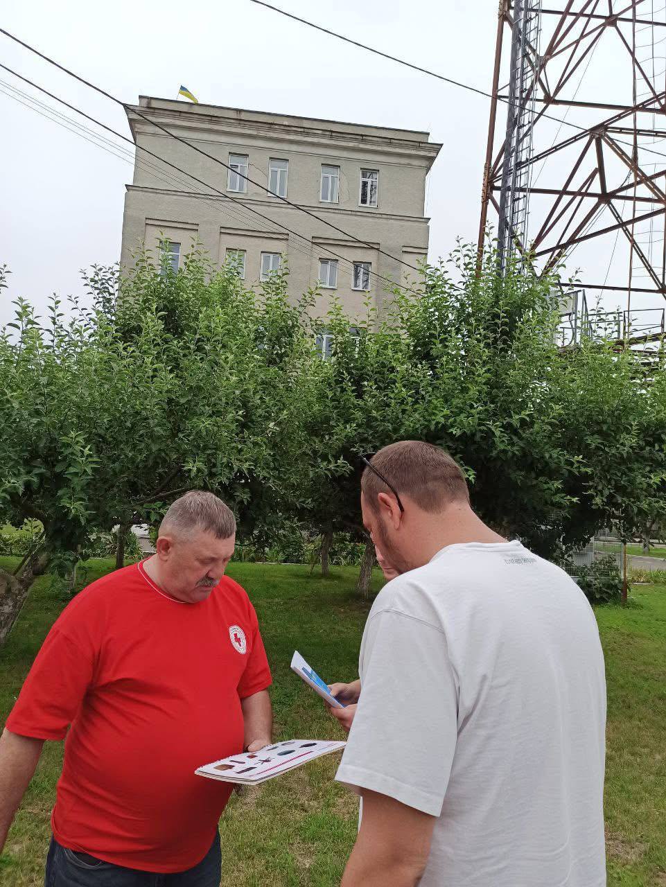 Фахівці Українського Червоного Хреста у Львівській області проводять інформаційні сесії з мінної небезпеки для місцевих мешканців та внутрішньо переміщених осіб у місцях видачі гуманітарної допомоги, а також для енергетиків у навчально-інформаційному центрі ПрАТ «Львівобленерго».