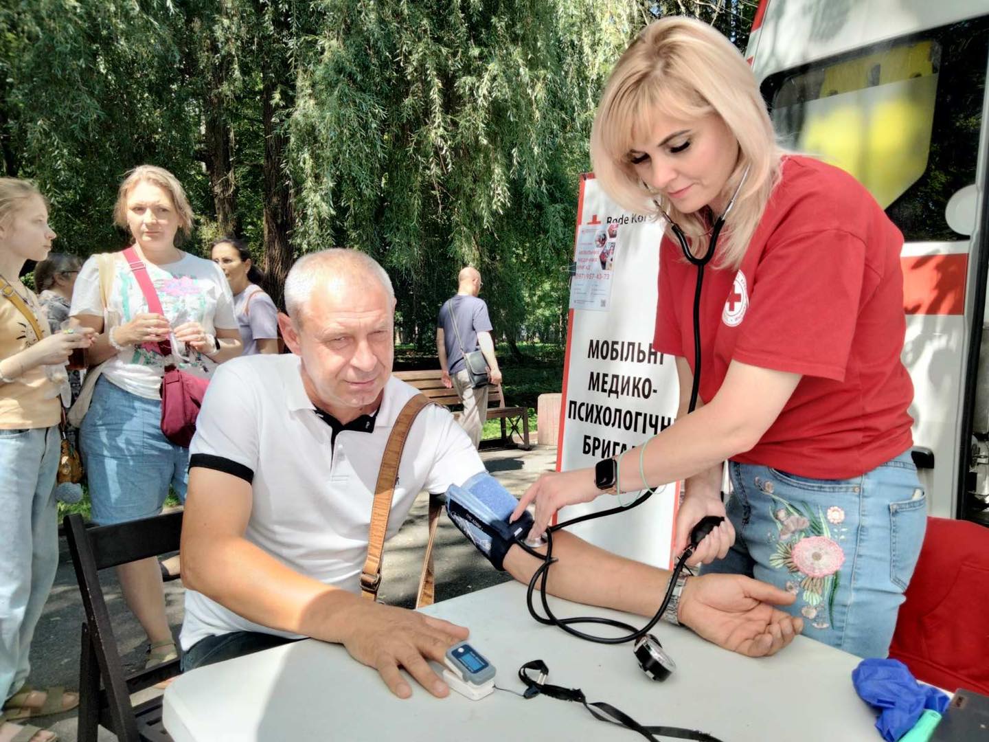 Хмельницька обласна організація Товариства Червоного Хреста України була представлена в чотирьох напрямках діяльності: зміцнення здоров’я громад, мобільна медична бригада здійснювала прийом громадян, мобільна реабілітаційна команда надавали консультації та демонстрували вправи на реабілітаційному обладнанні, захід супроводжував Загін швидкого реагування - ЗШР Хмельницької ОО ТЧХУ