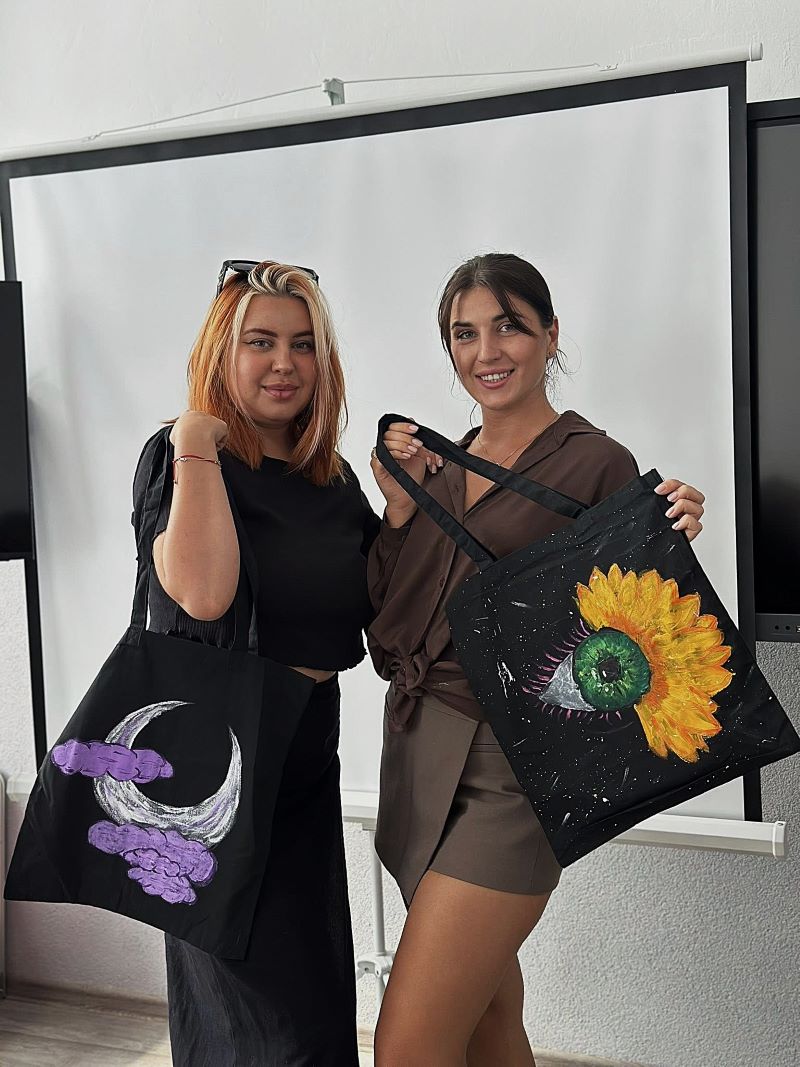 Захід провела наша талановита волонтерка, пані Руслана, яка показала, як звичайний шопер можна перетворити на справжній витвір мистецтва.
