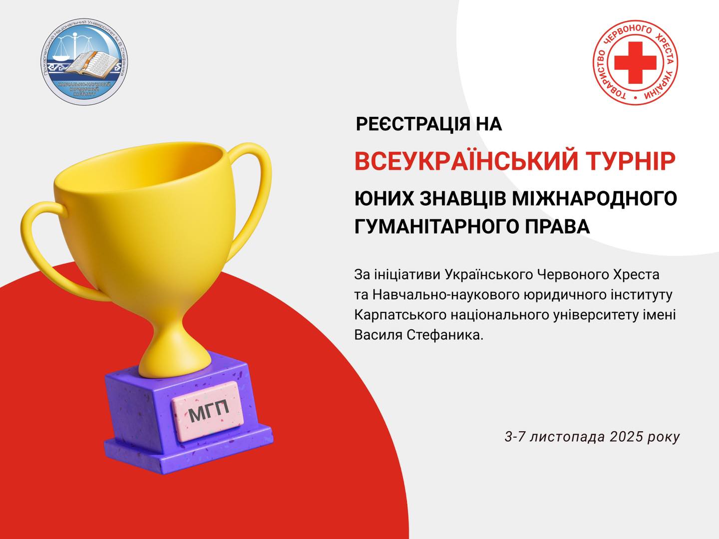 The Ukrainian Red Cross, with the support of the Educational and Scientific Institute of Law at Vasyl Stefanyk Carpathian National University, invites teams to participate in the first All-Ukrainian Tournament on International Humanitarian Law (IHL).