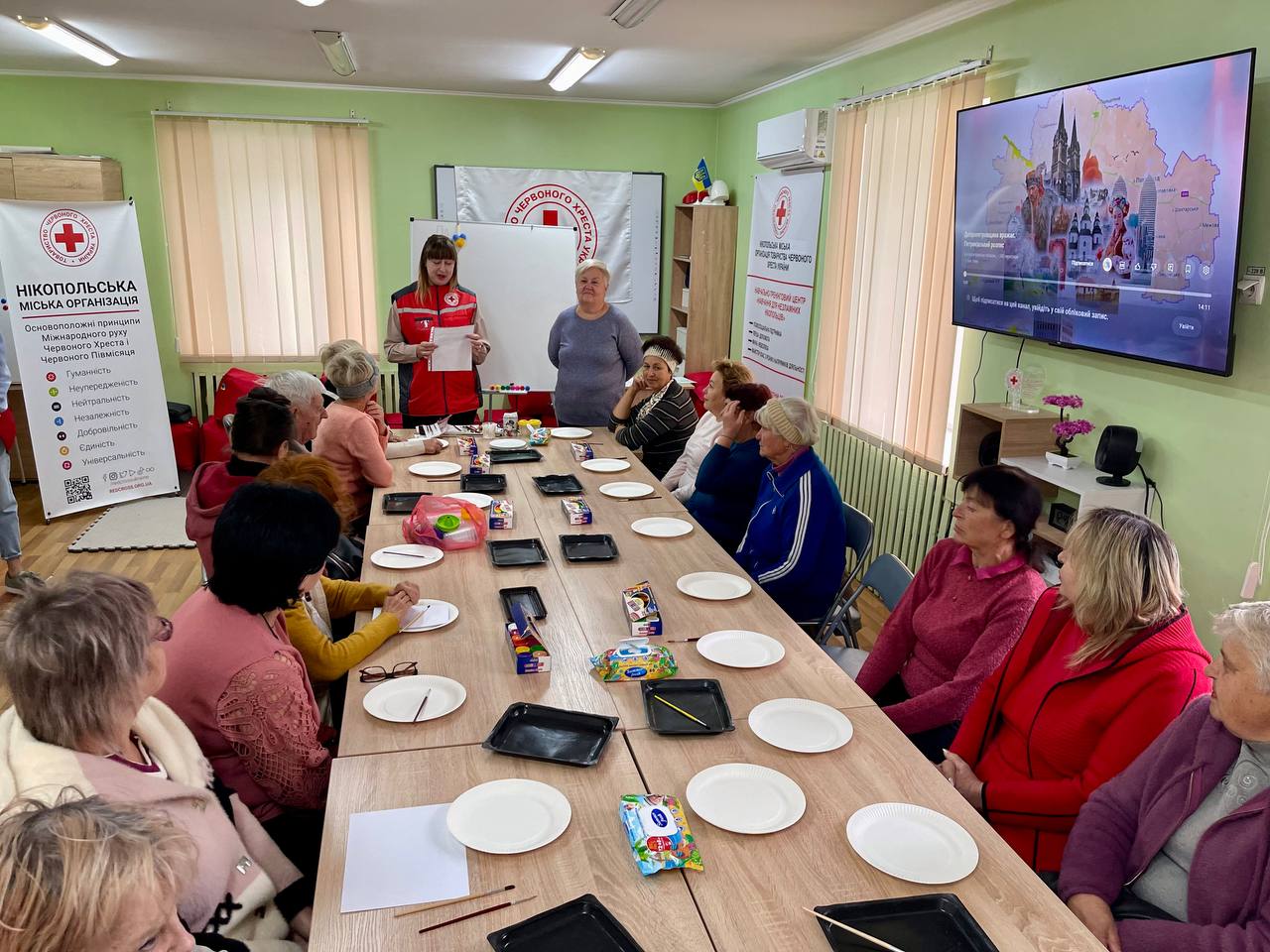 В офісі Нікопольської міськрайонної організації Товариства Червоного Хреста України відбувся теплий і натхненний захід до Дня людей поважного віку. До нас у гості завітали 18 шановних бабусь та дідусів, - підопічних Територіального центру міста Нікополь, - і волонтери подарували їм щиру увагу, турботу та гарний настрій.