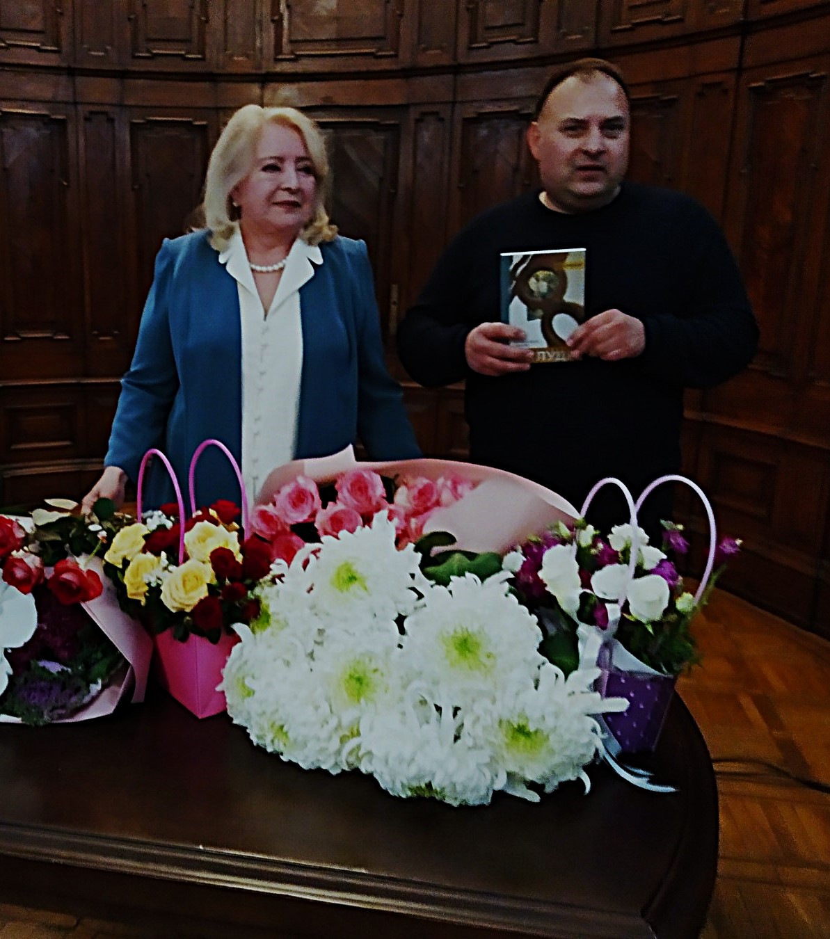 Я мала честь також бути запрошеною на презентацію нової книги «Облуда», яку написала моя однокурсниця по Львівському національному університету ім. Івана Франка Леся Холодюк (Лариса Федорів), з котрою ми навчалися на факультеті журналістики у 1971-1976 рр. в одній групі.