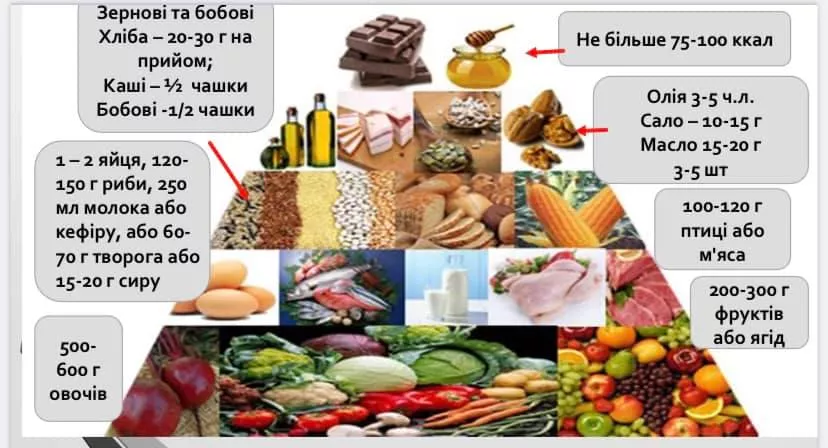 Існує багато типів дієт, проте лікар-дієтолог Оксана Скиталінська радить звернути увагу на Піраміду харчування українця, розроблену кафедрою гастроентерології, дієтології та ендоскопії Національної медичної академії післядипломної освіти (НМАПО) Галиною Анохіною та Наталією Харченко, з урахуванням наших умов життя, клімату та традицій харчування